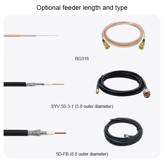 - Standard 3-meter feeder, RG58 (outer diameter 5.0) feeder