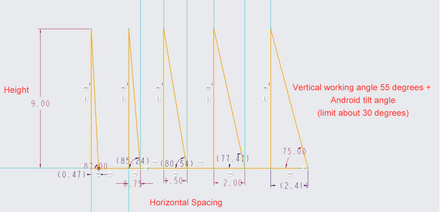 Standard: 75cm Limit: 65cm The limit is achieved by adjusting the safety radius to -2. |