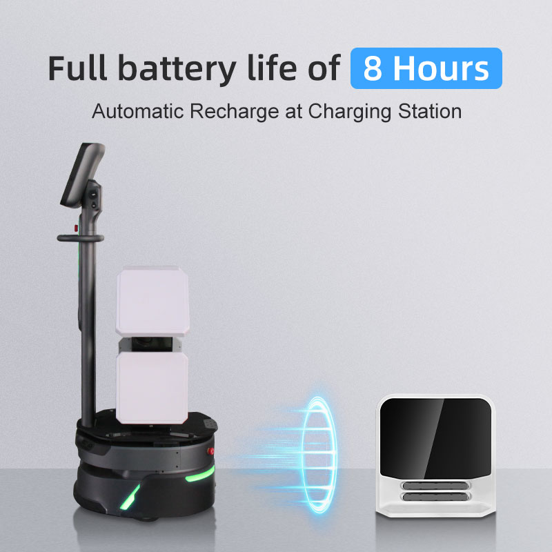 -When the battery is low, the wireless charging station will automatically recharge the battery, and the battery life is 8 hours when fully charged.