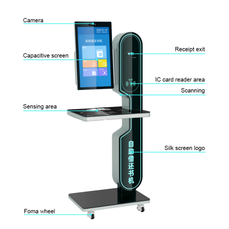 - 21.5-inch capacitive touch screen, vertical self-service book borrowing and returning machine, integrated design