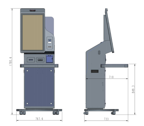 - Integrated binocular camera, receipt printer, banknote dispenser, cash box, electric card issuing machine, social security card, 1D/2D code, ID card/IC card reader and other functional modules