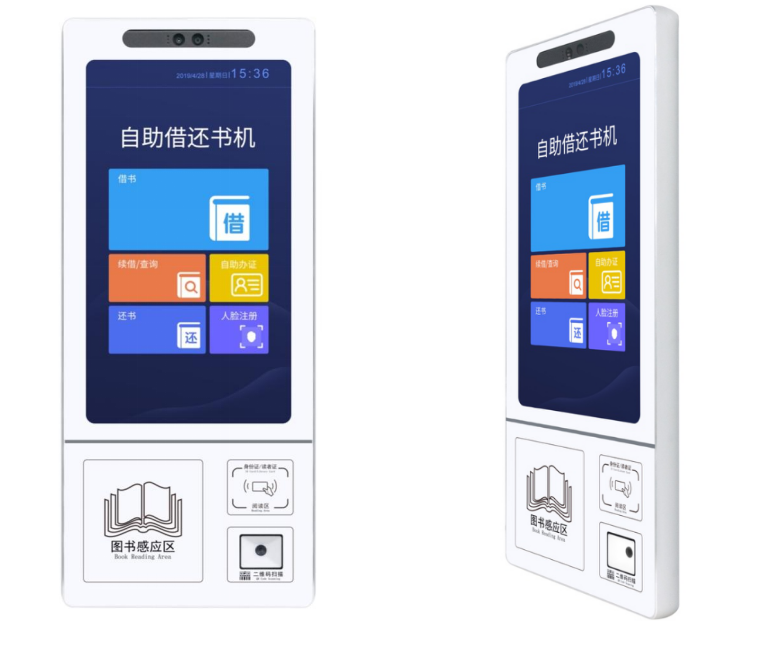 - 21.5-inch capacitive touch screen, with self-service borrowing and returning software, can realize book borrowing and returning, reader query, renewal and other operations